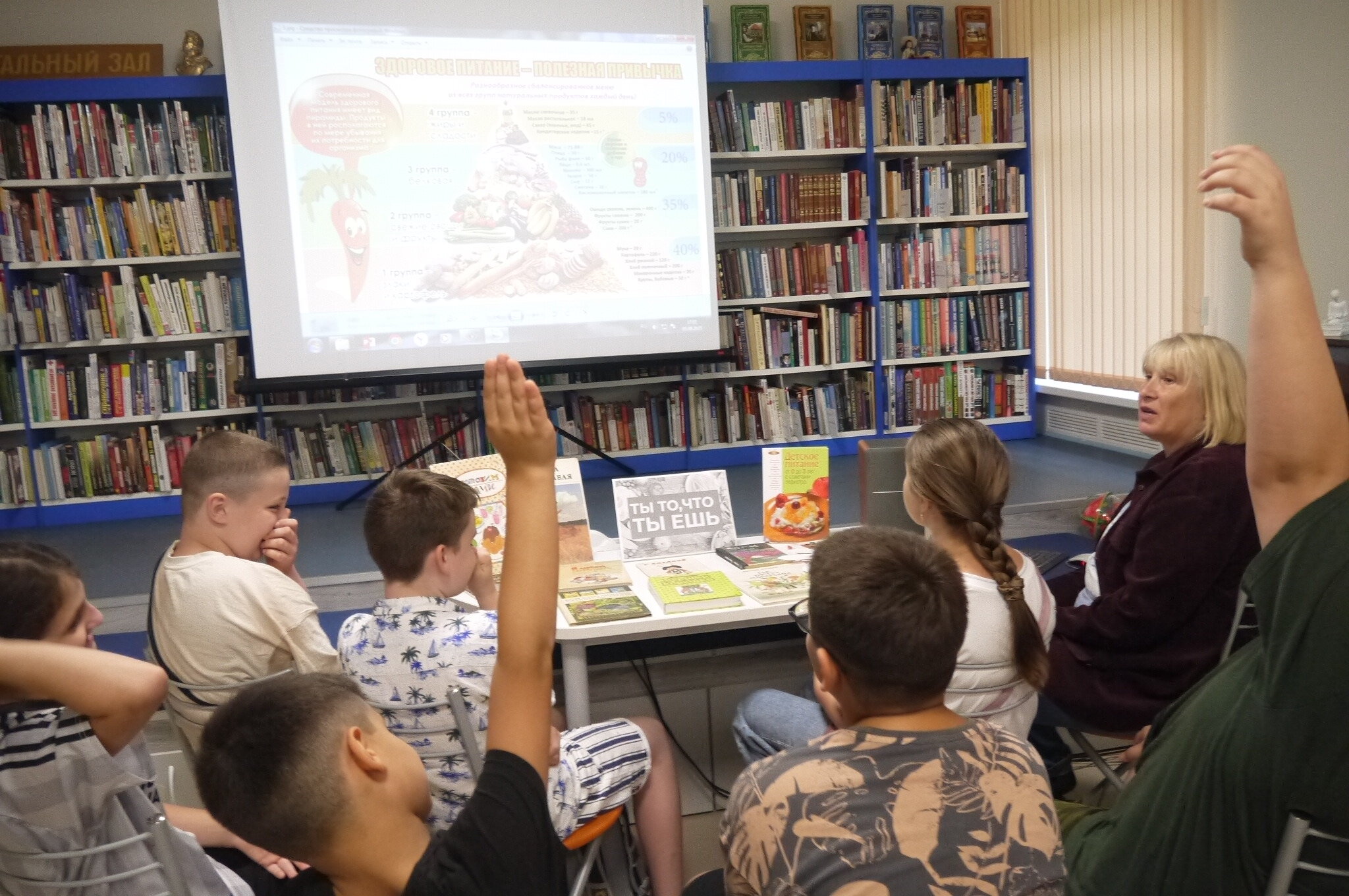 Одним из важнейших факторов, определяющих жизнедеятельность и здоровье человека, является питание. 5 августа в Центральной детской библиотеке для детей и взрослых прошел познавательный час "Ты - то,что ты ешь." С читателями побеседовали о том, как быть и оставаться здоровым, вспомнили пословицы о здоровье, загадки о витаминах и провели игру-викторину "Здоровье - большое богатство".