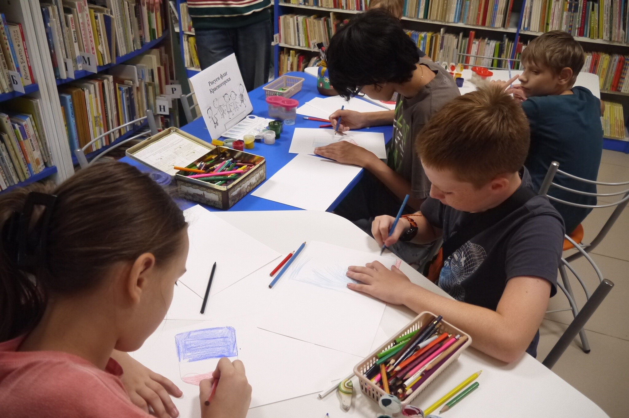 7 августа в Центральной детской библиотеке прошёл увлекательный творческий час для ребят из компьютерной академии "ТОП". Юные гости узнали о символике герба и флага Красногорска. После познавательной беседы дети с воодушевлением взялись за карандаши и краски, чтобы изобразить символ любимого города.