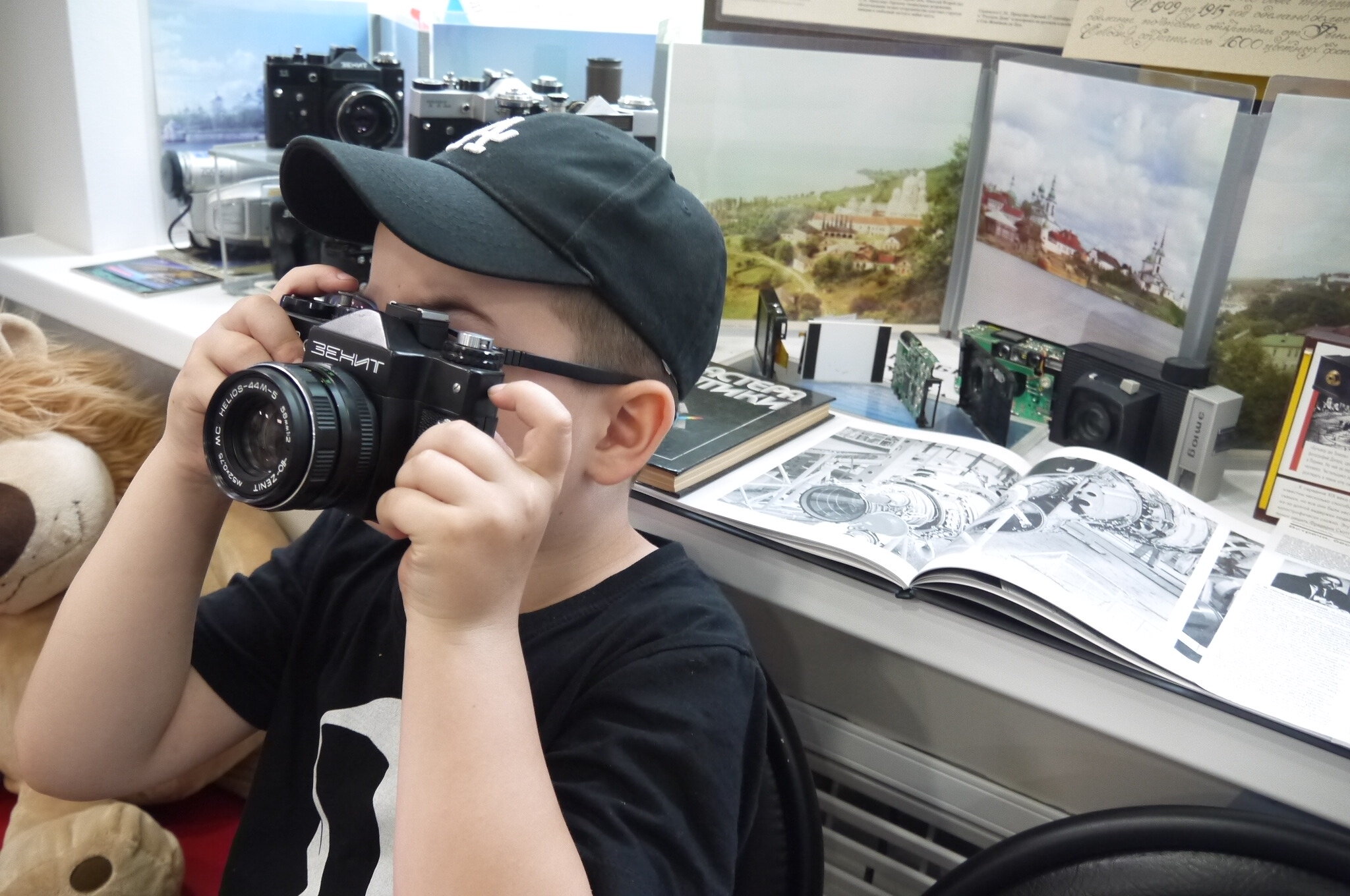 29 августа в Центральной детской библиотеке в рамках системного расписания прошла выставка-беседа "Оптика вокруг нас", посвященная удивительному миру оптических технологий. На нашей постоянной экспозиции предствлены легендарные фотоаппараты "Зенит", произведенные на Красногорском заводе имени С.А. Зверева.
