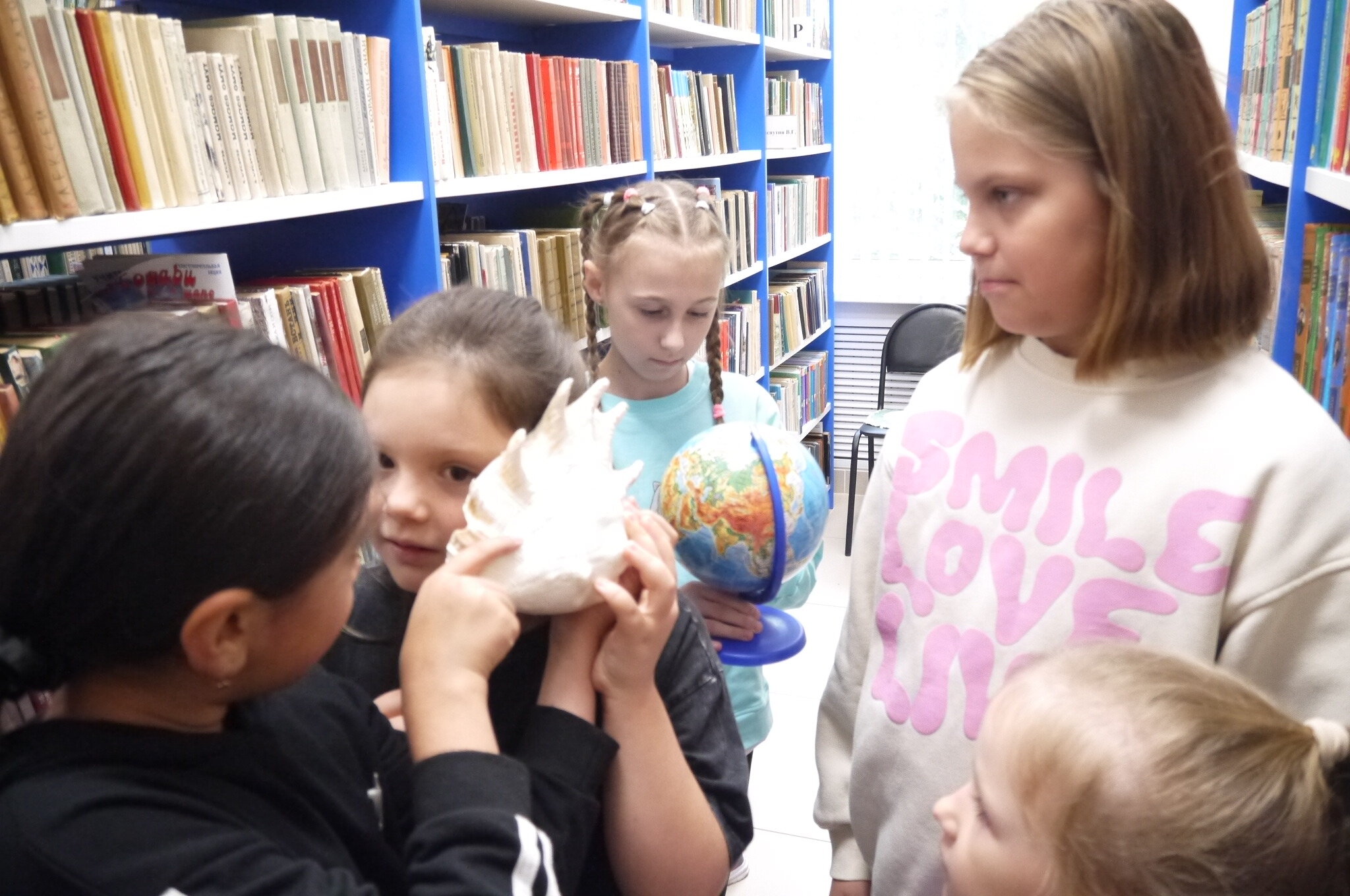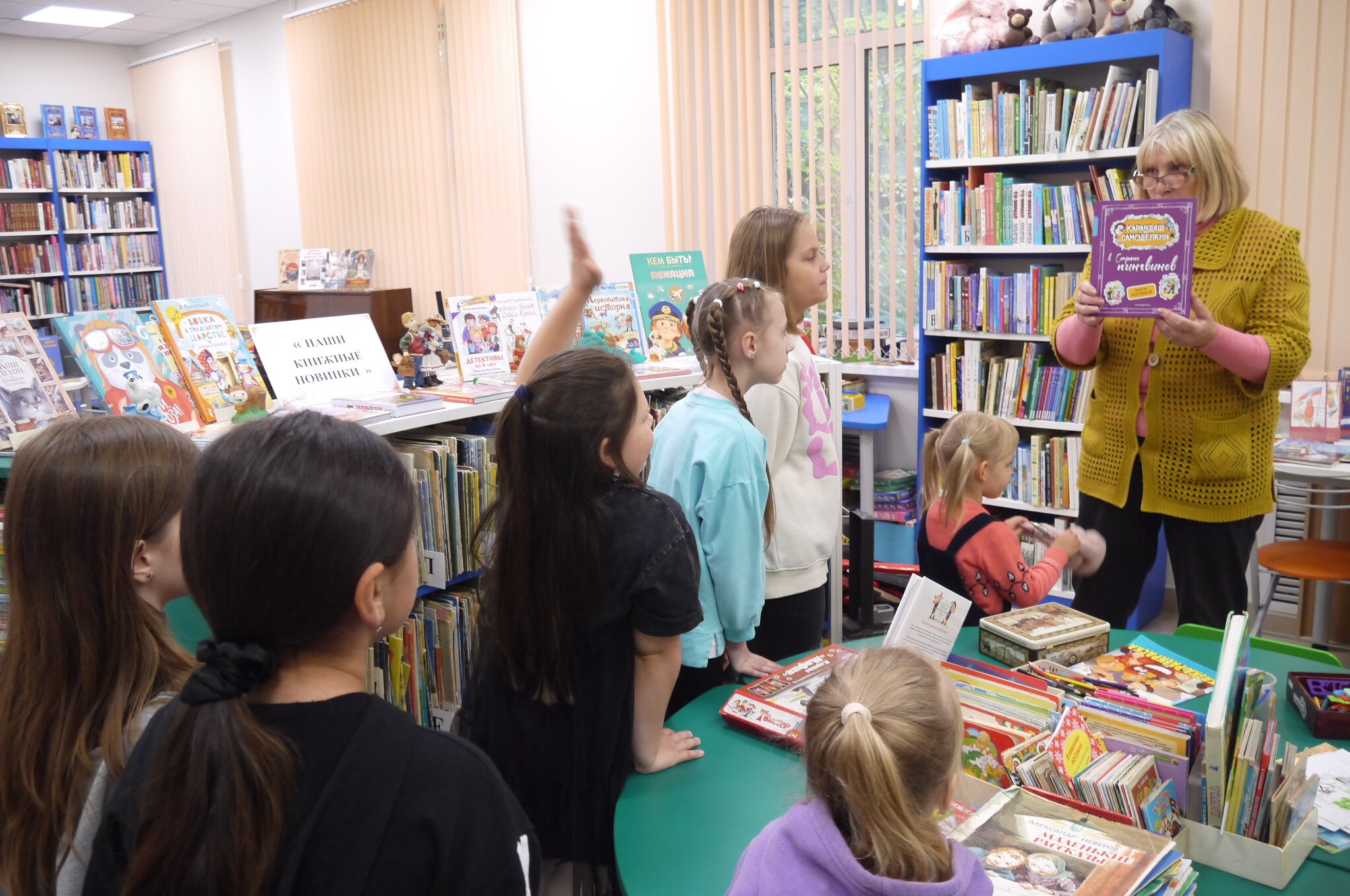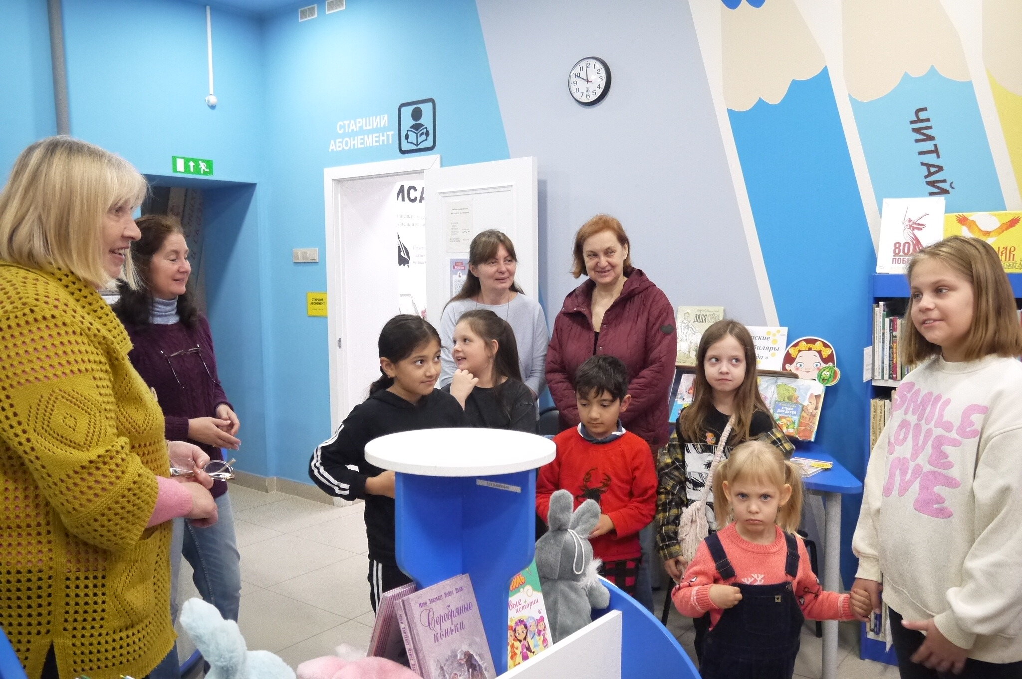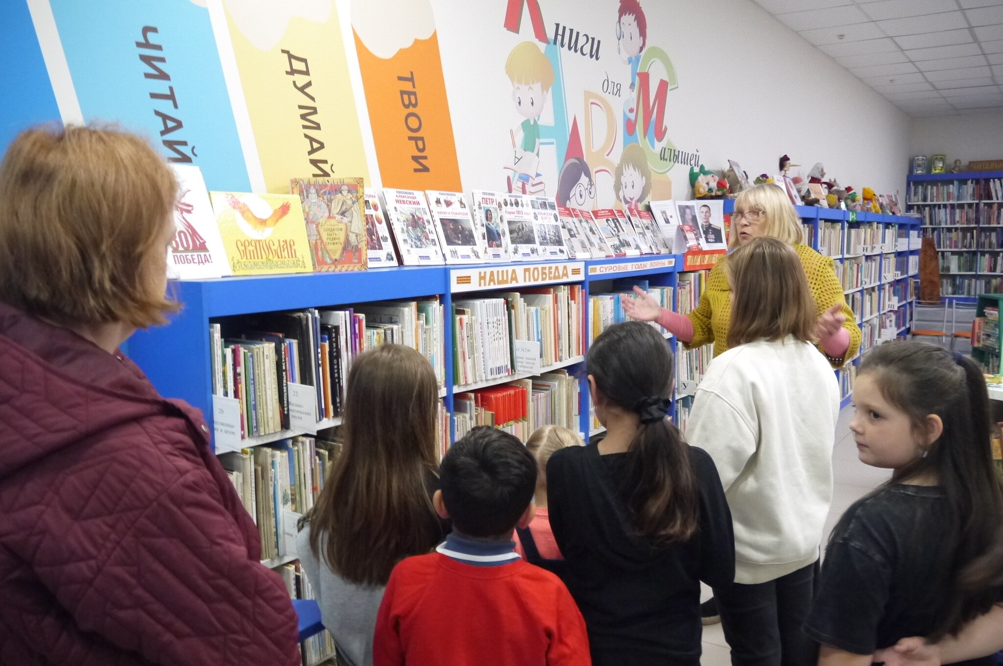 Юные гости отправились в познавательное путешествие по залам библиотеки, где узнали, как устроено книжное пространство, познакомились с правилами поведения и научились ориентироваться среди тысяч изданий. Особый восторг вызвало знакомство с самыми старыми книгами из фонда библиотеки — изданиями 1940-х–1950-х годов, которые бережно хранят историю и мудрость прошлых поколений.