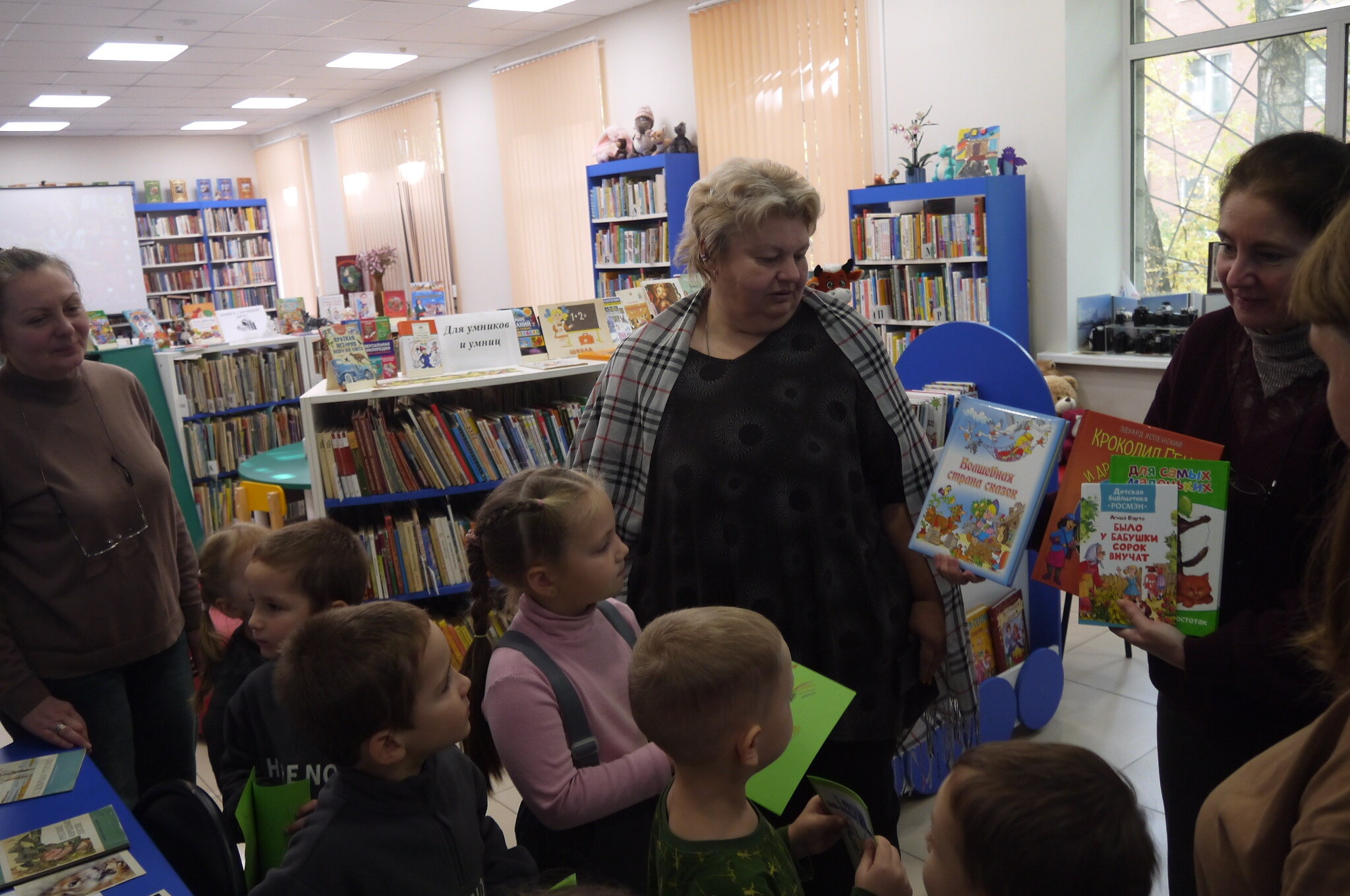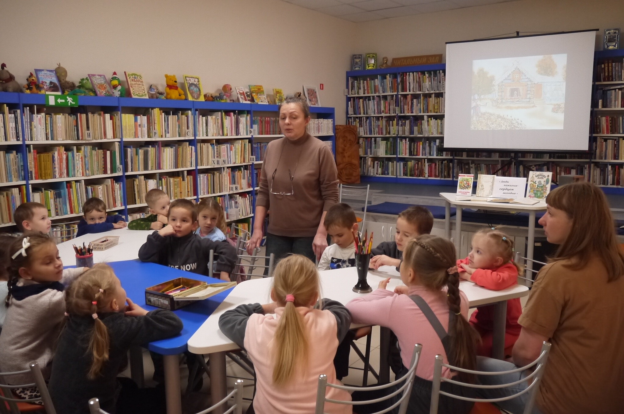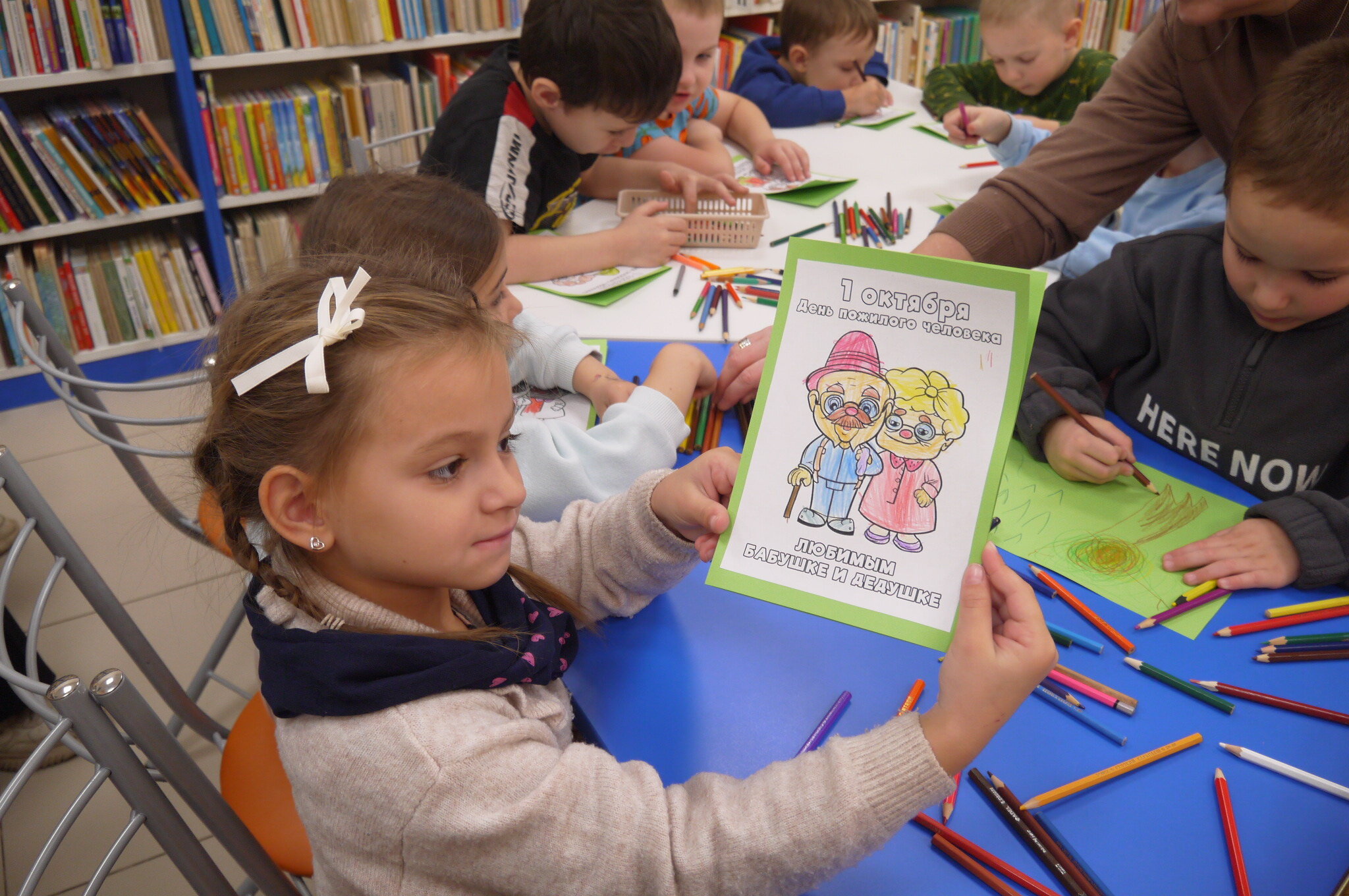 В Центральной детской библиотеке прошёл мастер-класс ко Дню пожилого человека "Люди пожилые - сердцем молодые!". Мероприятие посетили воспитанники д/с №32. С ребятами поговорили о пожилых людях и о том, как проявлять любовь и заботу о них. Детишки с удовольствием рассказали о своих дедушках и бабушках, рассмотрели книги, представленные на выставке, а также послушали стихотворение А.Барто "Было у бабушки сорок внучат". В завершение мероприятия посмотрели мультфильм "День рождения бабушки" и раскрасили открытки, чтобы подарить их своим родным.