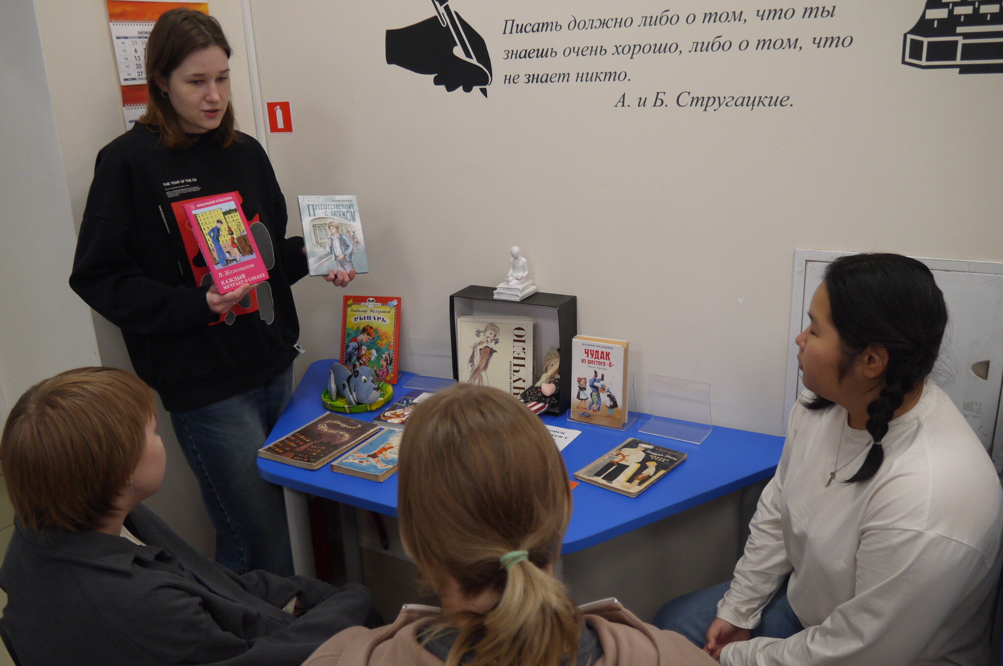 Юные читатели познакомились с творчеством известного писателя, чьи повести и рассказы уже много лет помогают детям и взрослым понимать друг друга. На выставке были представлены самые известные произведения автора: «Чучело», «Каждый мечтает о собаке», «Жизнь и приключения чудака» и другие издания, раскрывающие сложный и искренний мир подростков.