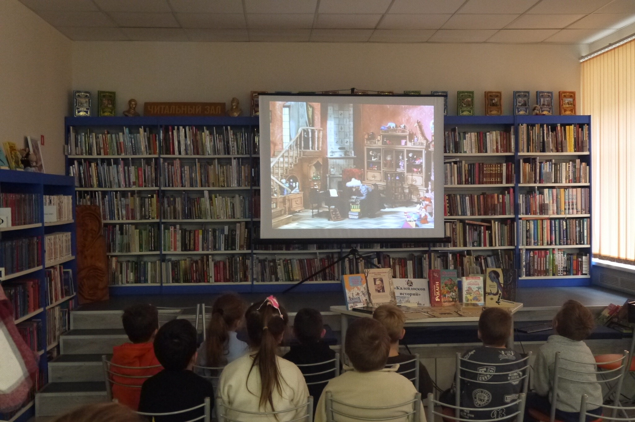 Нашими гостями стали воспитанники дошкольного отделения МБОУ СОШ №11. Дети окунулись в мир фантазии и доброты знаменитого итальянского писателя: познакомились с историей Чиполлино, послушали удивительные истории из сборника «Сказки по телефону» и посмотрели советскую экранизацию «Путешествия Голубой Стрелы».