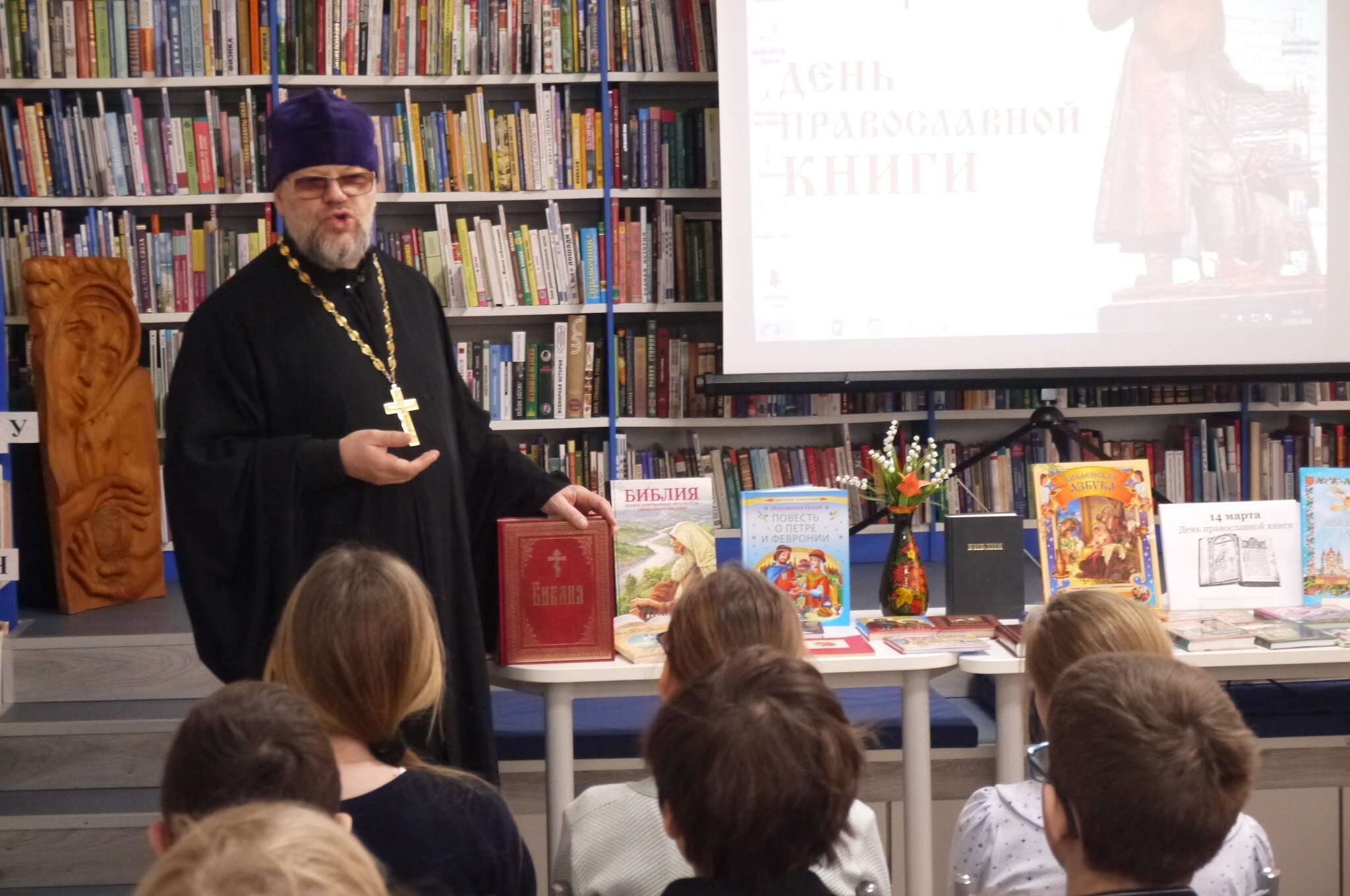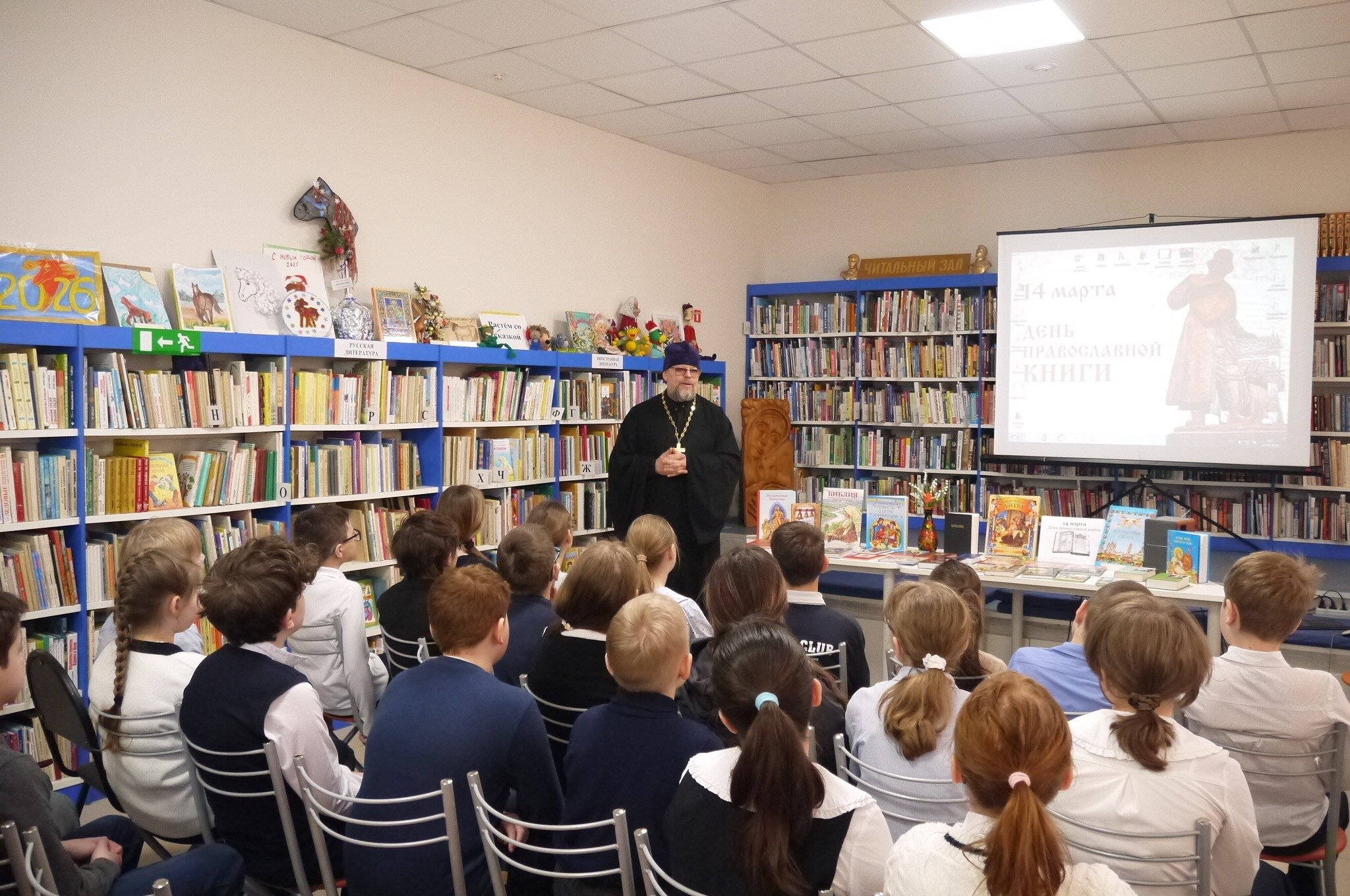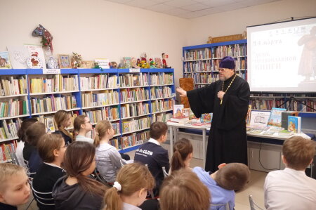 13 марта мы пригласили в Центральную детскую библиотеку отца Сергия на встречу с учениками 4 класса МБОУ СОШ №11. Батюшка провёл для наших юных гостей урок нравственности ко Дню православной книги «Православная книга – источник мудрости!» Отец Сергий говорил о вреде компьютерных игр и о пользе чтения мудрых книг. В рамках беседы поднимались темы любви к ближнему, послушания и нравственного образа жизни.