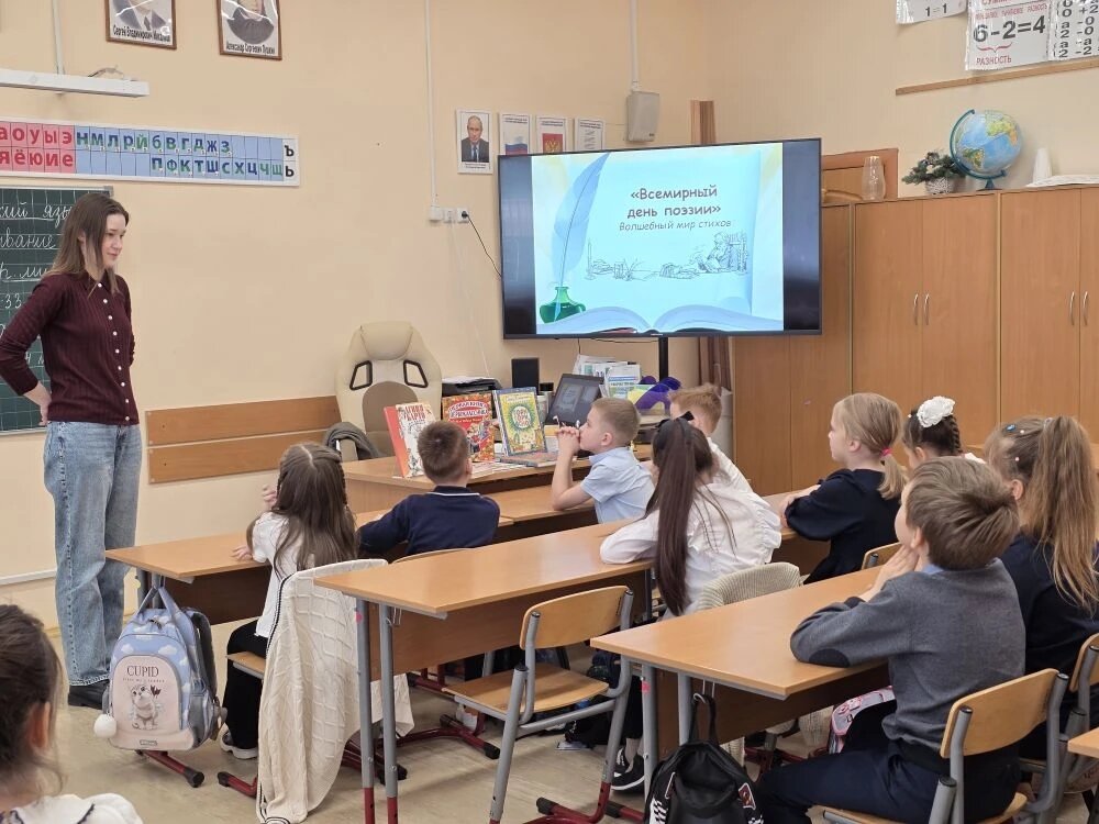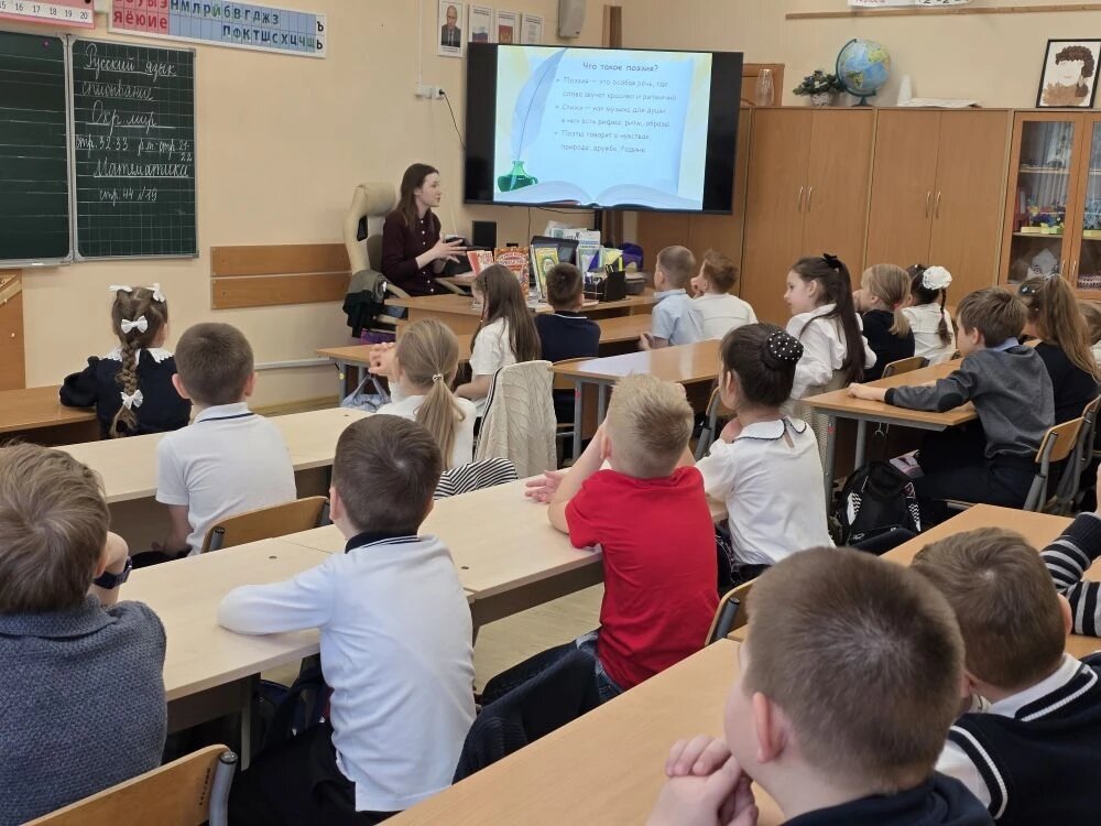 18 марта сотрудники Центральной детской библиотеки посетили первоклашек МБОУ СОШ №18 с поэтическим часом «Стихов серебряная нить». Мероприятие приурочено ко всемирному Дню Поэзии. Библиотекари познакомили детей с книгами весёлых стихов, которые живут в нашей библиотеке: Б. Заходера, С. Маршака, С. Михалкова и других. Вместе с ребятами вспомнили стихи Агнии Барто о любимых игрушках: Зайке, Мишке, Бычке и Кораблике. А завершили мероприятие увлекательной поэтической викториной, узнав много новых стихотворений!