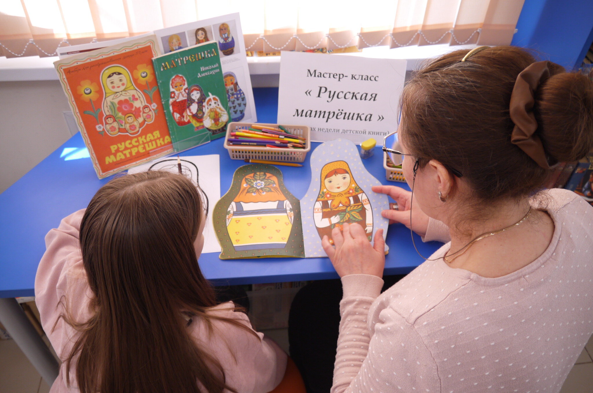 В Центральной детской библиотеке продолжается увлекательная Неделя детской книги и в её рамках прошёл мастер-класс "Русская матрёшка". Дети узнали историю древней и любимой всеми игрушки-матрёшки, а также создали свою яркую куклу-матрёшку.