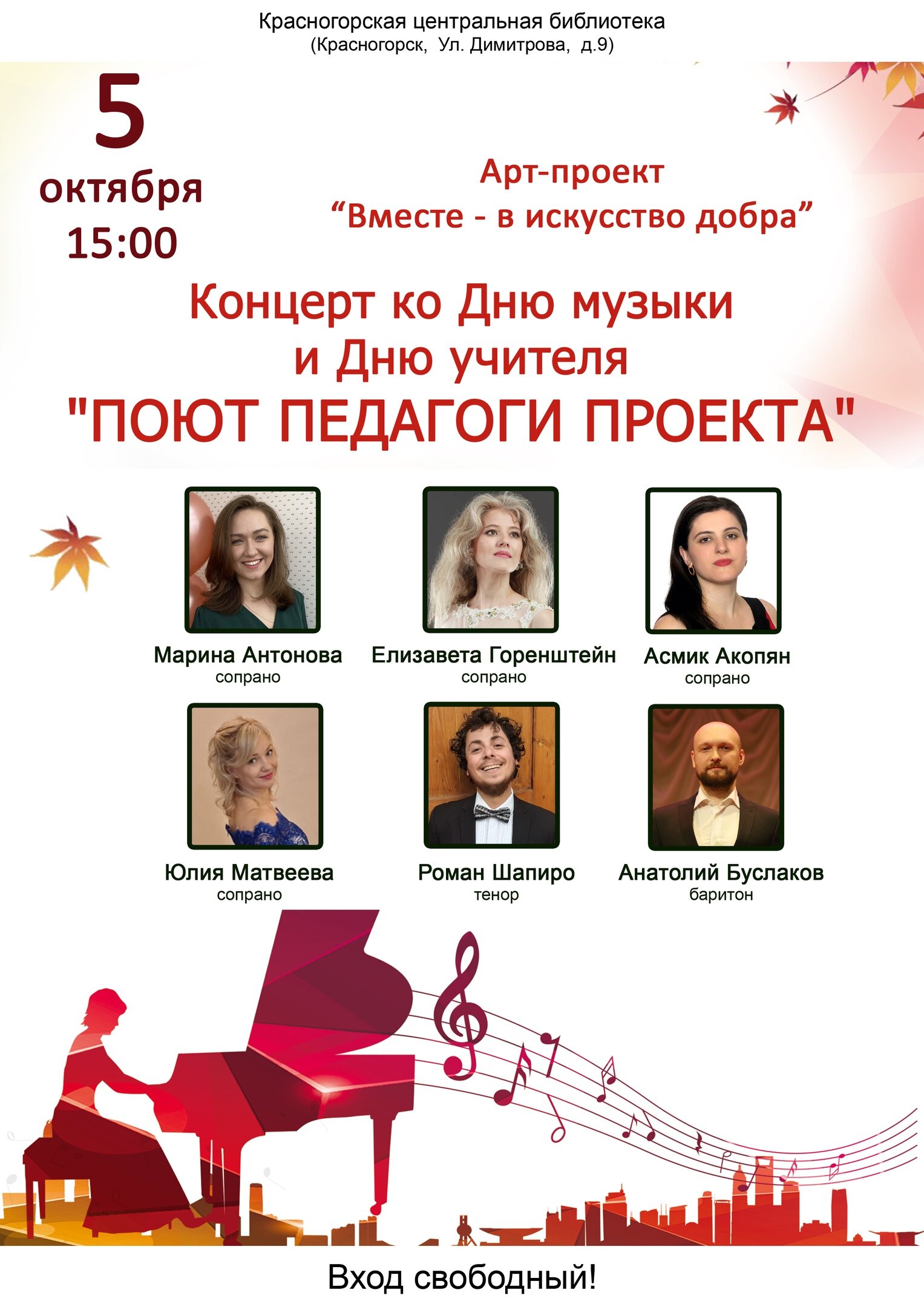 Дорогие друзья❗ ✨Центральная библиотека совместно с Арт-проектом «Вместе с искусством добра» приглашают вас на концерт оперной музыки, посвящённый Дню учителя.