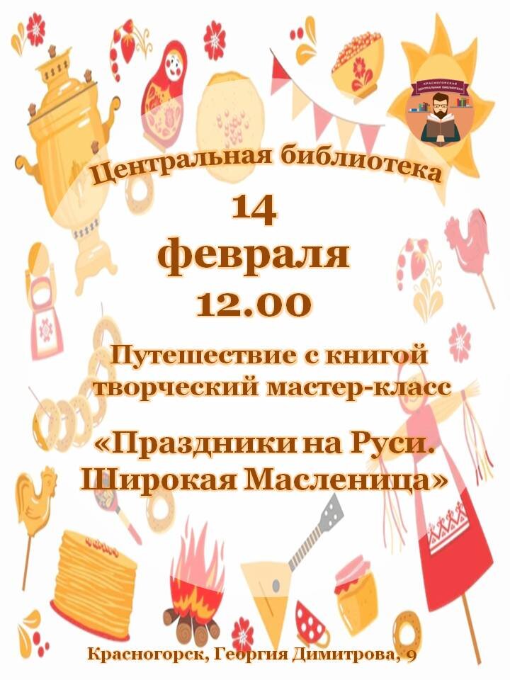 14 февраля в 12.00 Центральная библиотека распахивает двери для всех, кто хочет весело и с пользой провести время! Приглашаем девчонок, мальчишек и, конечно же, их родителей отправиться в настоящее масленичное приключение! 🥳