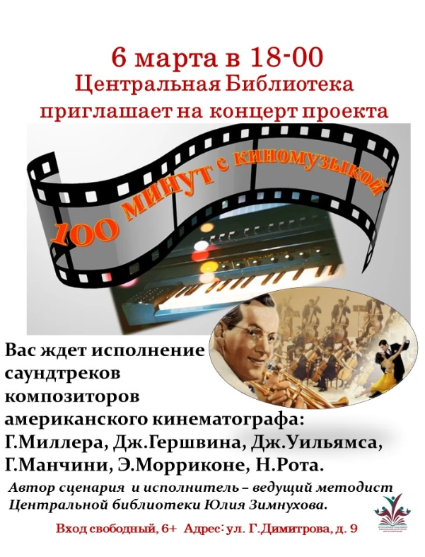 Центральная библиотека приглашает на концерт проекта «100 минут с киномузыкой»!