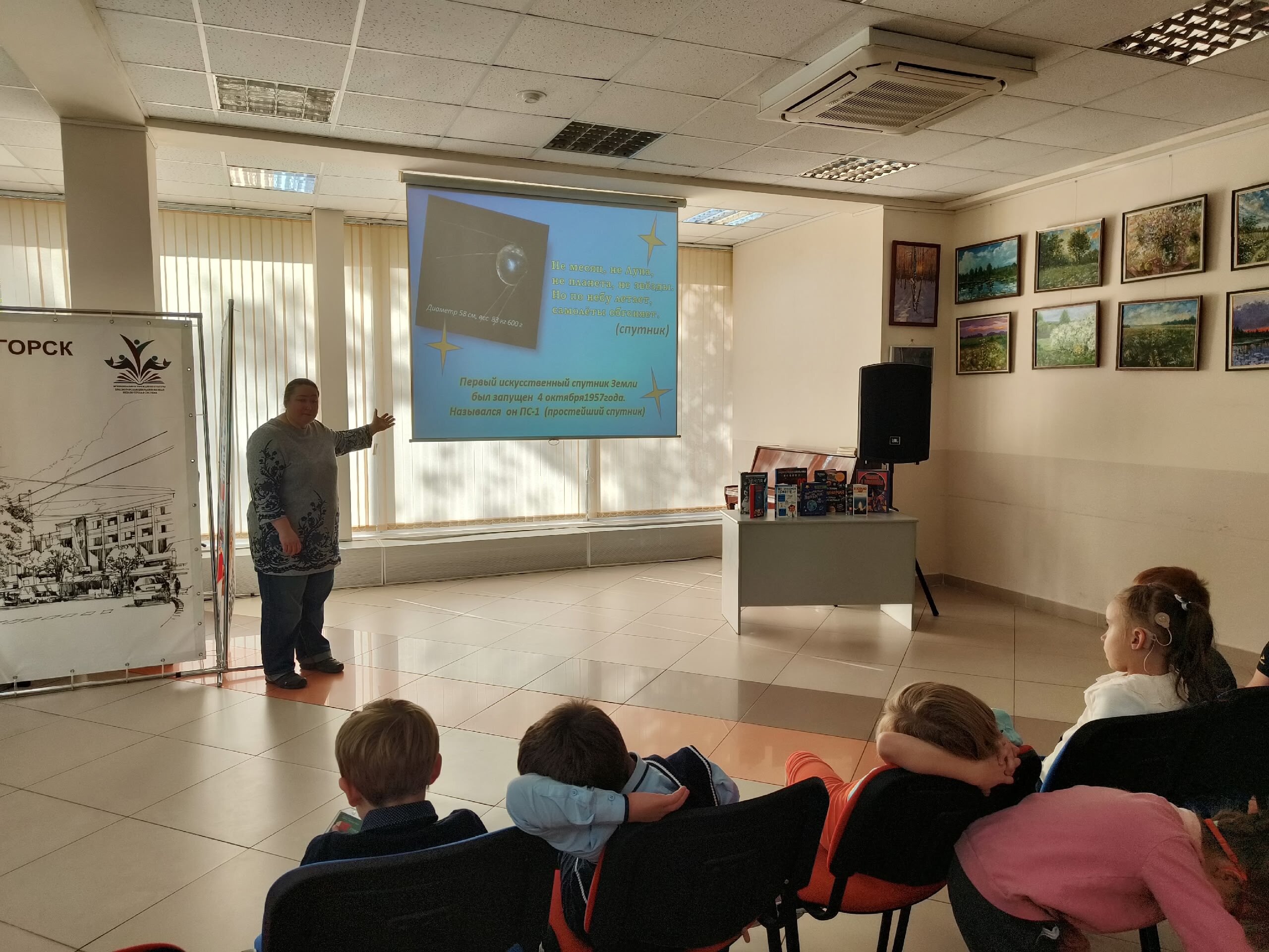 МУК "КЦБС" » Новости и События » События » В Центральной библиотеке для учащихся 1 класса МБОУ «Начальная школа — детский сад» состоялась захватывающая интерактивная беседа «Космические загадки», посвящённая запуску первого спутника Земли.